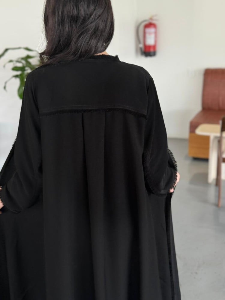 العباية تأتي بتصميم أنيق حيث يتميز هذا التصميم باكمام هدب خيار مثالي للنساء اللاتي يبحثن عن الراحة والأناقة .